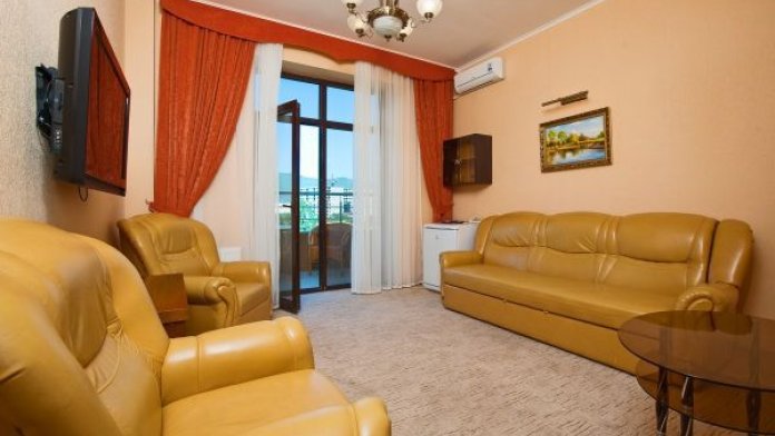 Этот двухкомнатный, двухместный номер создан для деловых людей, которые даже на отдыхе ведут переговоры. Оснащен всей необходимой мебелью: прикроватными тумбочками, журнальными столиками, светильниками, стульями, шкафами для одежды; холодильником; мини-баром; набором посуды; телефонной связью; бесплатным WI-FI.