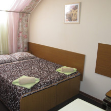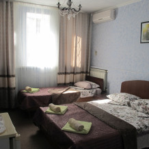 Этот номер будет удобен при размещении семейной пары, двоих взрослых, родителя с ребенком. При необходимости за небольшую дополнительную плату, можем предоставить доп.место с комплектом постельного белья. В случае размещения двух взрослых и ребенка без дополнительного места, дополнительно взимается 250 руб в сутки для возмещения коммунальных расходов. В номере две односпальных кровати, которые при желании мы сдвигаем и накрываем ортопедическим топером, в результате получается полноценная двуспальная кровать, плательный шкаф,тумбочки, стол, банкетки, холодильник,зеркало.