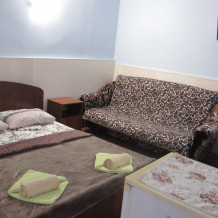 Номер расположен на первом этаже, подходит для семейного проживания, людей почтенного возраста, а так же людей с ограниченными возможностями. При необходимости можно поставить доп. место за дополнительную плату.В номере есть плательный шкаф, тумбочки, стол, холодильник.