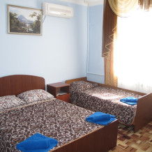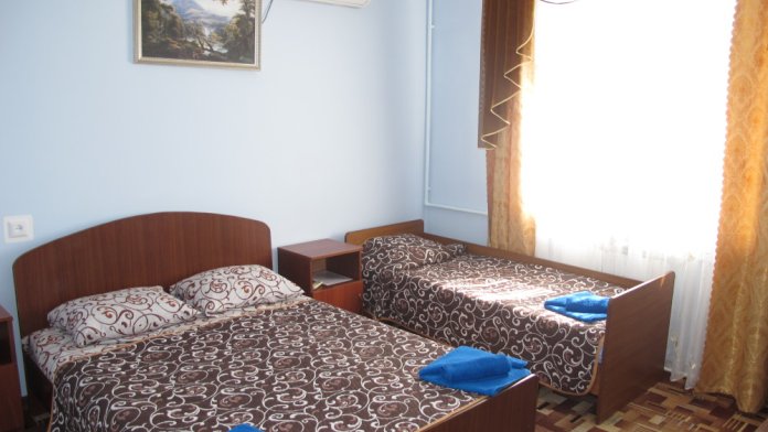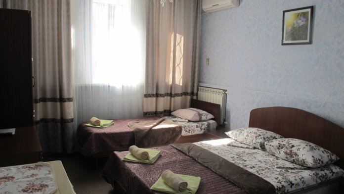 В нашем гостевом доме уютные 2-х и 3-х местные номера, с двуспальными и односпальными кроватями. В каждом номере есть душ, туалет, холодильник, сплит-система, телевизор, цифровое TV, бесплатный wi-fi.