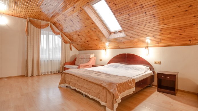 В номере двухспальная или 2 односпальные кровати, прикроватные тумбочки, шкаф, туалетный столик, сейф
