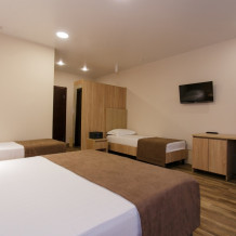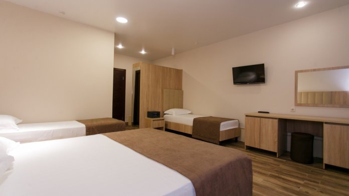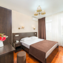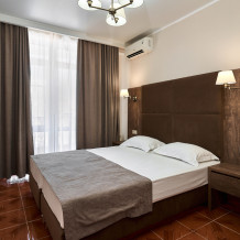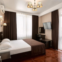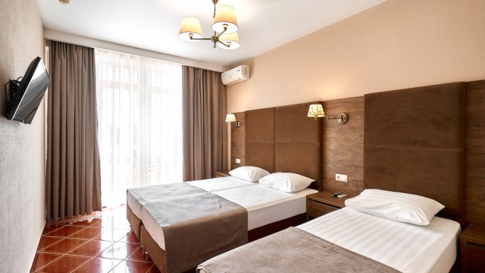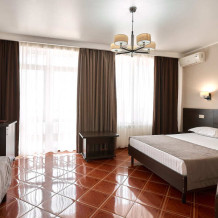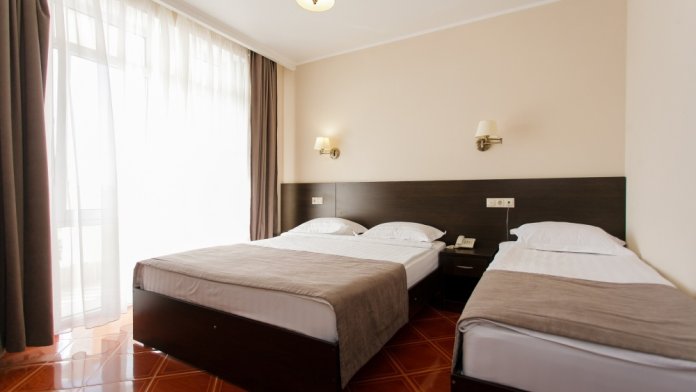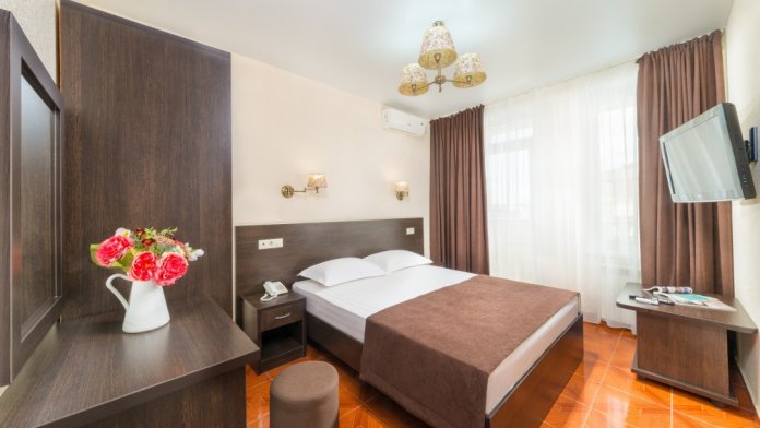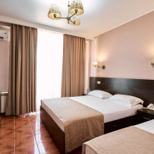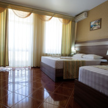 Номерной фонд отеля составляет 87 уютных номеров различных категорий, оснащенных всем необходимым. Весь день гости отеля имеют возможность отдыхать на собственном пляже (1700 метров от отеля), купаясь в лучах жгучего солнца и волнах ласкового Черного моря, а в отеле их ждет кафе с разнообразным и вкусным питанием, развлечения на любой вкус и отдых на белоснежной постели. Наш персонал всегда готов помочь в любой ситуации и сделать отдых максимально незабываемым. Мы всегда рады, когда наши гости возвращаются к нам вновь и вновь.