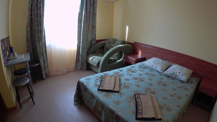 В номере двуспальные или односпальные кровати, кресло-кровать.