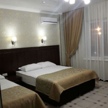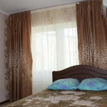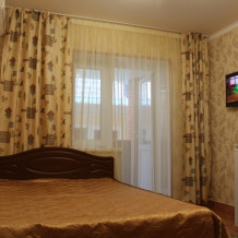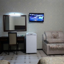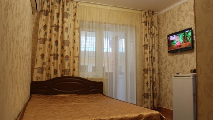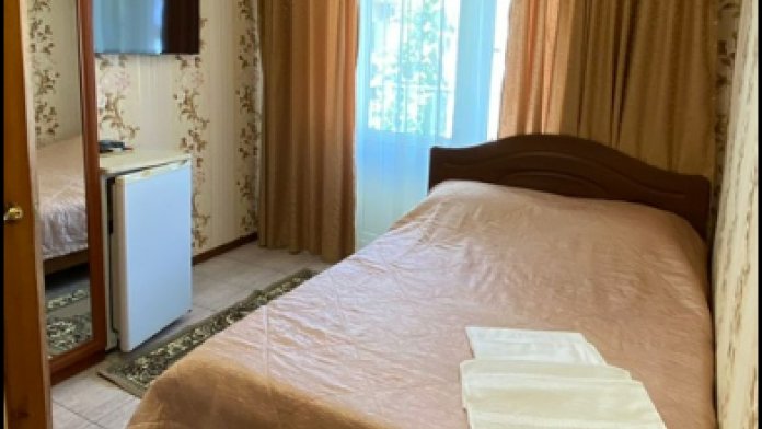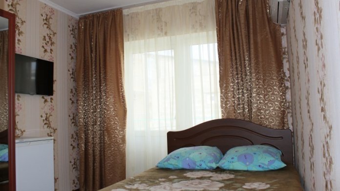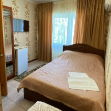 Гостевой дом представляет собой двухэтажное здание новой постройки. Стандартные номера - в каждом номере 2-х спальная широкая кровать с ортопедическим матрацем, раскладной диванчик, стенка для вещей, холодильник, телевизор, сплит-система, душ, туалет, горячая и холодная вода постоянно! Металлопластиковые окна гарантирующие шумоизоляцию. Возле каждого номера индивидуальный столик.