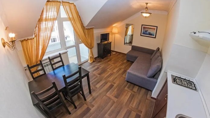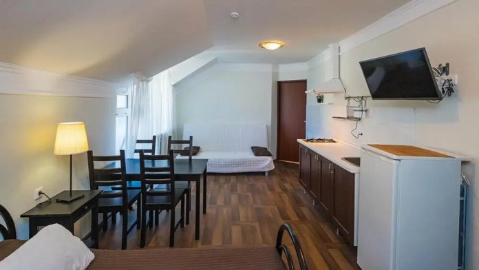 Апартаменты 4-6-местные трехкомнатные с террасой и кухней.