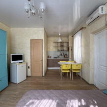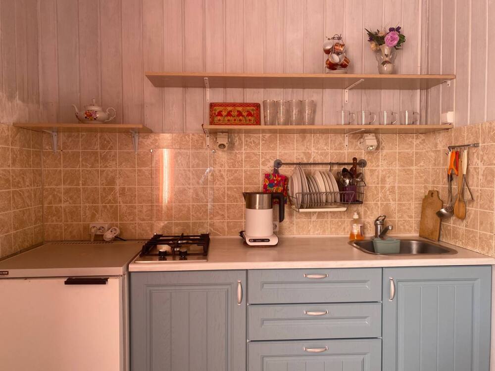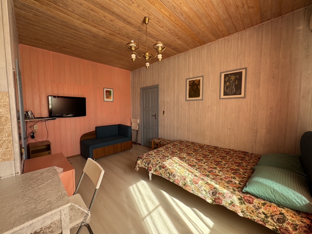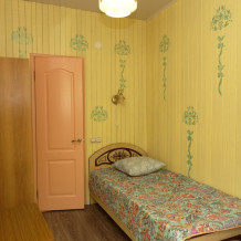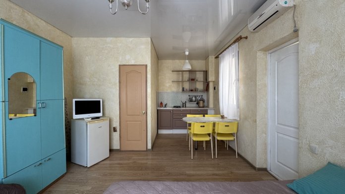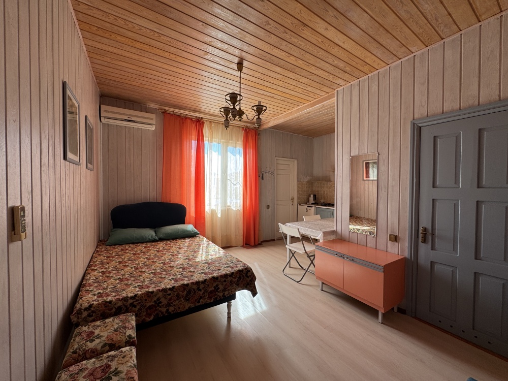 Двухкомнатный Двух-трёхместный уютный номер со всеми удобствами. В номере кухня,санузел, телевизор , кондиционер, двуспальная кровать, односпальная кровать,шкаф, тумбочки.