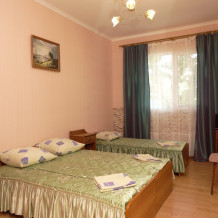 Отдыхающие проживают в 1-но, 2-х,3-х, 4-х местных номерах со всеми удобствами (санузел, совмещенный с душем). Во всех номерах современный ремонт и удобная, качественная мебель и телевизор. В некоторых номерах сплит-система и холодильник. Также есть один двухкомнатный номер со всеми удобствами и собственной кухней и однокомнатный номер с отдельным входом со всеми удобствами и собственной кухней, а также одноместный номер с частичными удобствами (душ).