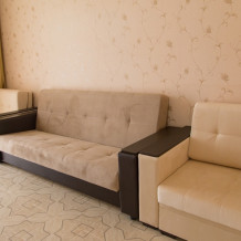 Возможно размещение 6 взрослых и 4 ребенка до 12 лет. В комнате 2 шт. большие кровати 180х200, 4 шт. кресло кровать, шкаф, кондиционер, телевизор 2 тумбочки. Вторая комната оснащена так же. 3-я комната проходная, стоит диван большой и две кресло кровать, стулья, стол, телевизор, два балкона, шкаф, холодильник.