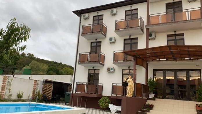 На территории гостевого дома работает столовая. К услугам гостей – открытый подогреваемый бассейн, беседки, мангал, общая кухня со всей необходимой техникой и посудой. Предусмотрена парковка для автомобиля.