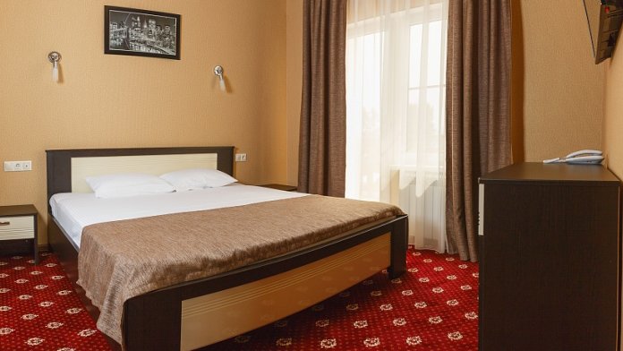 Есть кулер с горячей водой. При желании вместимость номера можно увеличить с помощью дополнительного места (еврораскладушка). Максимальное количество гостей — 5.