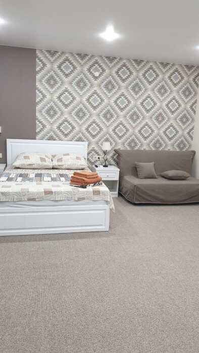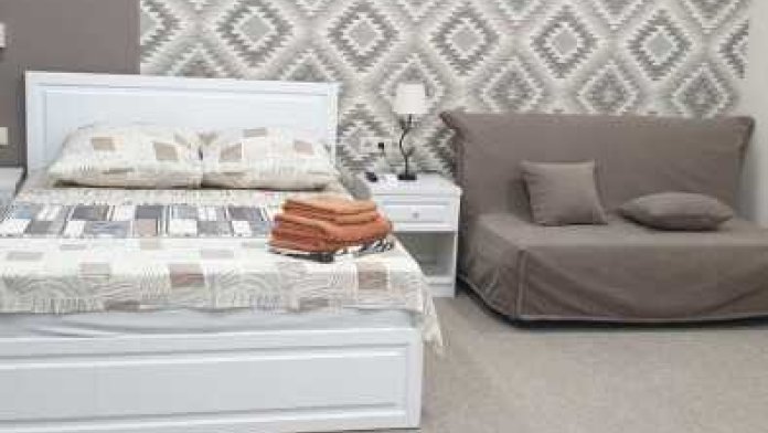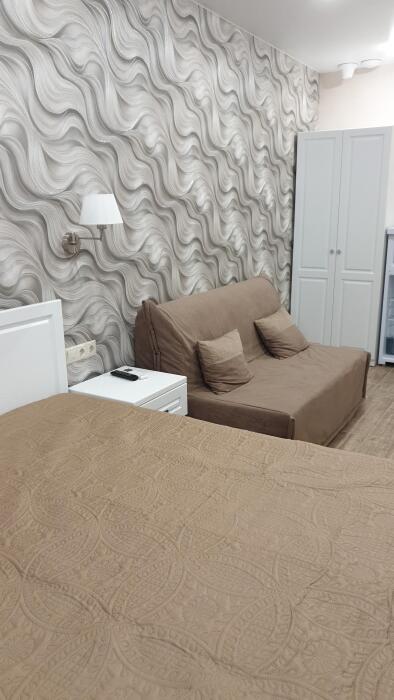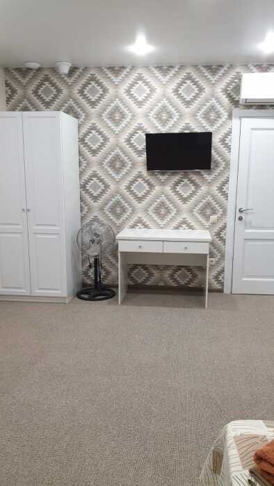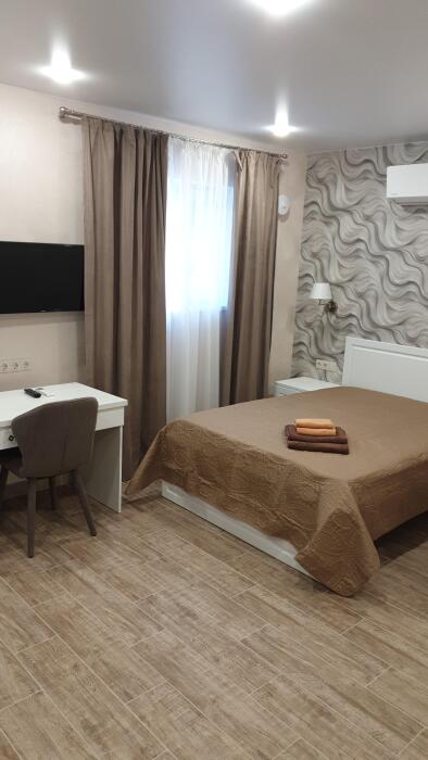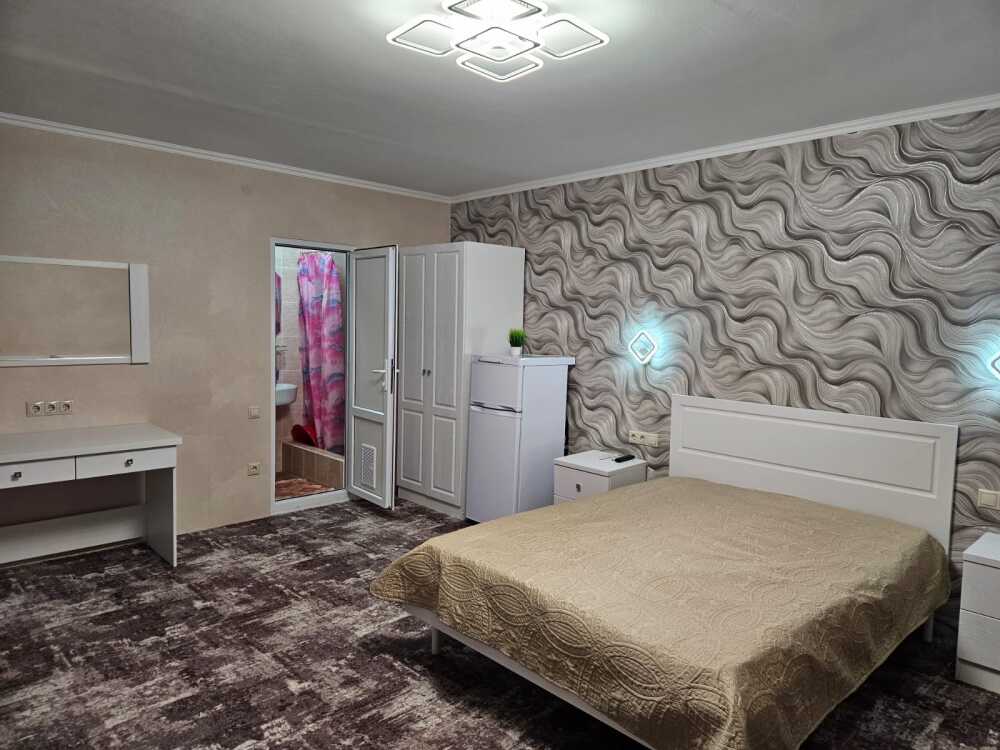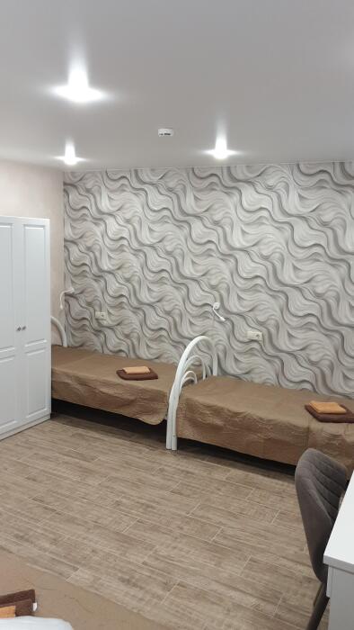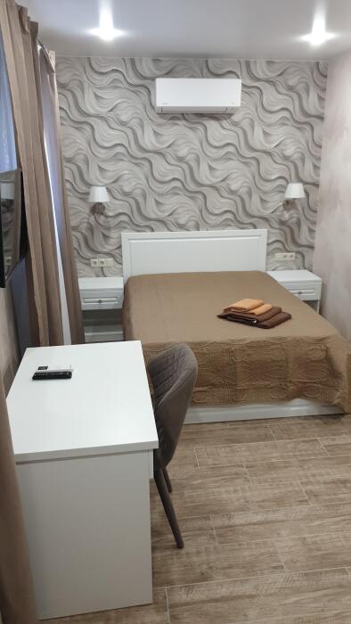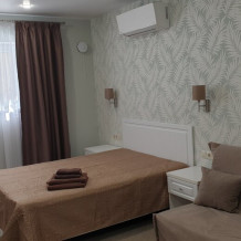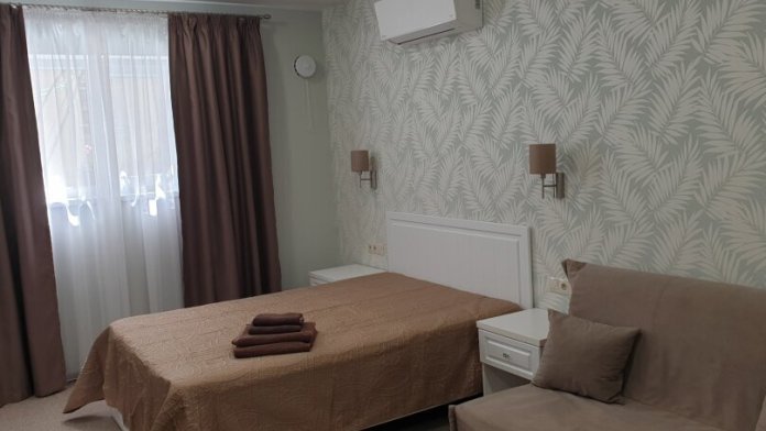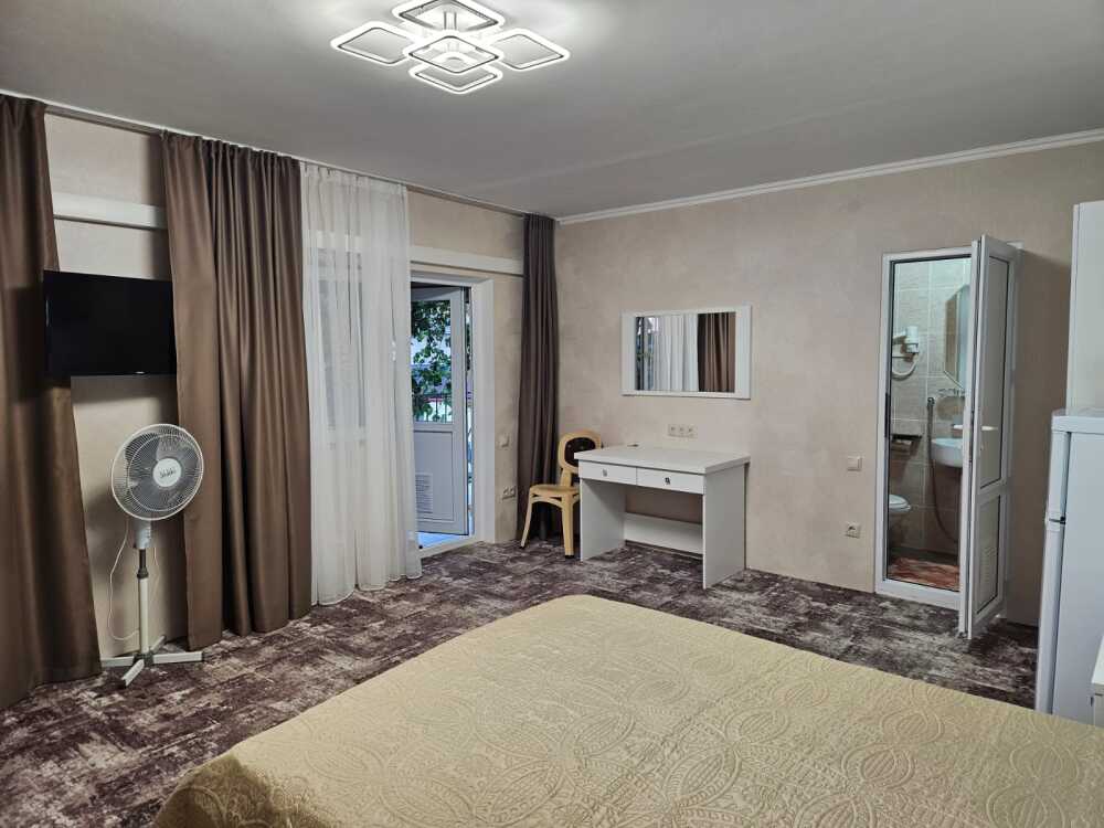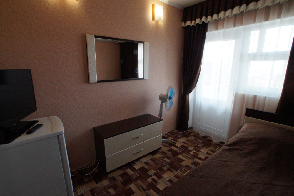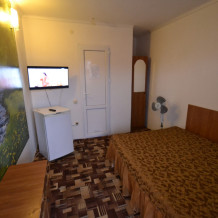 В номере: душ с туалетом, телевизор, холодильник, сплит-система, вентилятор, постельные принадлежности, полотенца, фен . На этаже кухня с набором посуды на два номера. Номер находится на первом этаже, балкона нет.