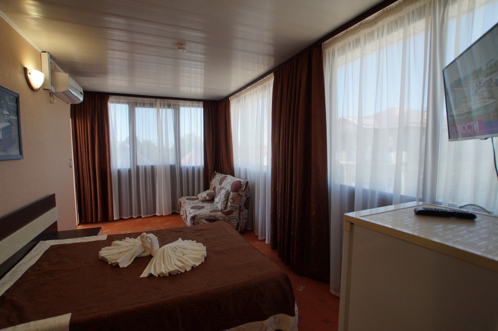 Гостям, для проживания, предлагаются номера со всем необходимым для комфортного отдыха. Все номера оснащены душем и туалетом, телевизором, холодильником и сплит-системой.