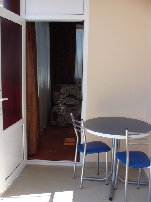 В номере: душ с туалетом, телевизор, холодильник, сплит-система, вентилятор, постельные принадлежности, полотенца, фен предоставляем по запросу. На этаже мини-кухня с набором посуды (кухня на 5 номеров), на балконе столик со стульями.