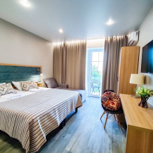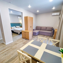 Прекрасный номер с террасой и кухней рассчитан на комфортное проживание до 5 человек. Оборудован всей необходимой техникой и мебелью для комфортного проживания.