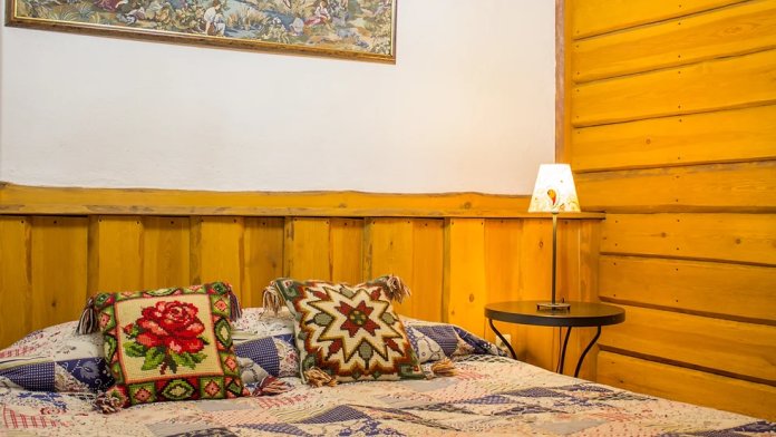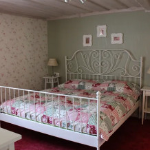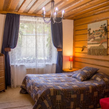 Номер расположен в отдельном от главного корпуса здании. В номере две комнаты: кухня-гостиная с диваном-кроватью и спальня с двухспальной кроватью. Ванная комната оборудована душевой кабиной, феном и туалетом. Номер оснащен телевизором, а также всей необходимой посудой и техникой для приготовления блюд.