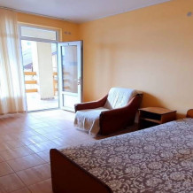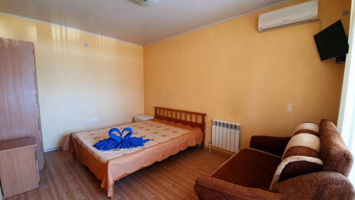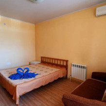 Номера разной вместимости, оборудованы всем необходимым для комфортного проживания. В номерах душ и туалет, сплит система, кондиционер, телевизор, холодильник, мебель. Много семейных удобных номеров с видом на море.