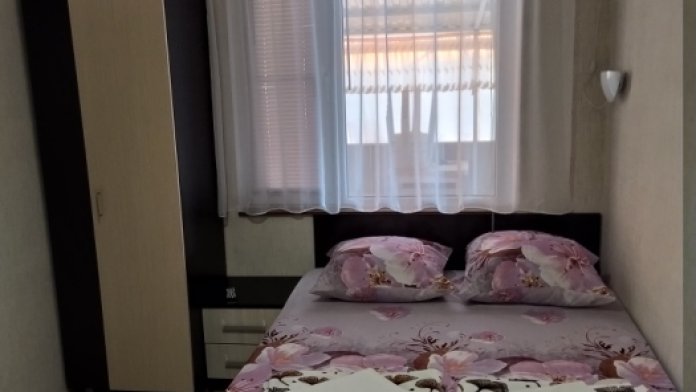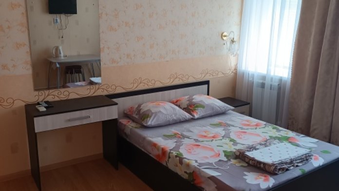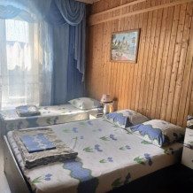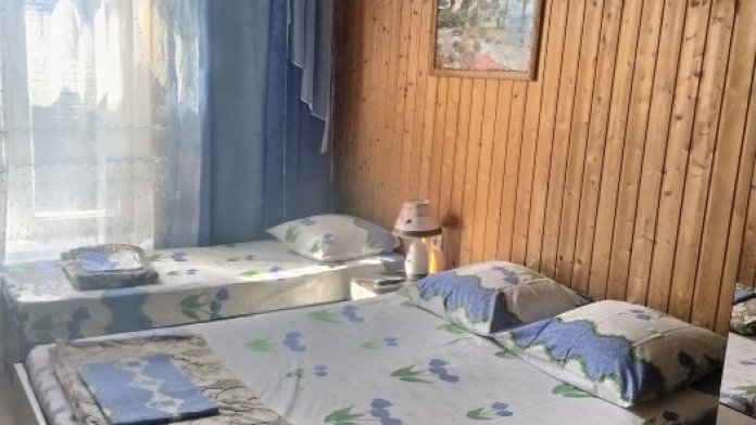 Однокомнатный номер с удобствами, в номере : с/у, холодильник, телевизор, сплит система, посуда, двухспальная кровать и две односпальные (двухъярусная) кровати. Кухня общая на террасе. Во дворе мангальная зона, детская площадка.