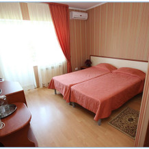 В номере 2 кровати или 1 двуспальная + диван, сплит-система, телевизор, душ и санузел, холодильник, телефон, сейф. Наличие балкона уточнять.