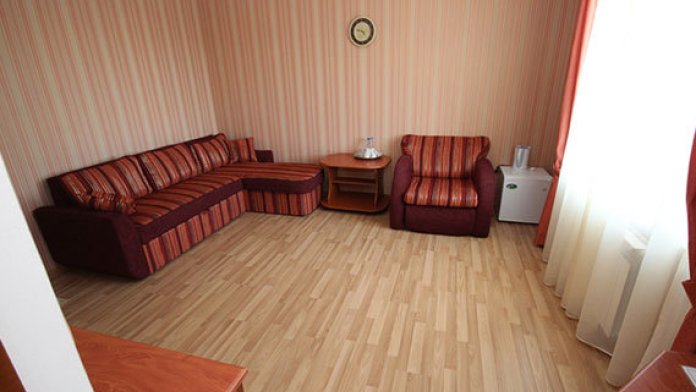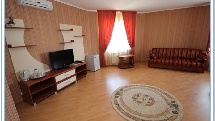 Впервые наш отель открыл двери для своих посетителей летом 2008 года. Мы считаем, что наша молодость - это наше преимущество. Отель построен из лучших строительных материалов, оборудован по последнему слову техники, в каждом номере комфортная современная мебель. Наш отель работает по принципу «дома вдали от дома». Мы стараемся, что бы наши гости чувствовали себя как дома или в гостях у хороших друзей. При этом, в отличие от нахождения дома, Вы будете освобождены от бытовых забот, которыми с удовольствием займется высококлассный персонал отеля. Номера оборудованы всем необходимым для комфортного отдыха во время визита в Ейск или командировки в наш город: уютным интерьером, качественной стильной мебелью, ТВ и телефоном, кондиционером, душем, феном, индивидуальным сейфом. Для гостей отеля, приезжающих в Ейск на автомобиле, организована охраняемая бесплатная парковка. Мы заботимся о безопасности наших гостей, поэтому по периметру прилегающей к отелю территории ведется круглосуточное видео-наблюдение. Безусловным преимуществом отеля является его выгодное расположение - в 5-7 минутах пешком от центра города и в 5-7 минутах езды до центрального пляжа. Кроме того, отель расположен практически на берегу Ейского лимана, где тоже с удовольствием купаются взрослые и дети. На сегодняшний день в отеле открыты для гостей 12 номеров, расположенных на 2 этажах. На первом этаже отеля расположен уютный бар, где Вас всегда вкусно и сытно накормят. Во дворе отеля мы построили отличный мангал, Вы всегда можете совершенно бесплатно им воспользоваться и насладиться вкуснейшими шашлыками. На третьем этаже отеля мы организовали мини-спорт зал для гостей, следящих за своей физической формой и бильярдную с шикарными столами, играть за которыми - истинное удовольствие.