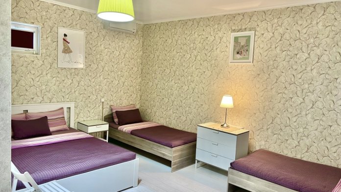 Большой четырехместный номер с двуспальной кроватью (160) и двумя односпальными кроватями . В номере имеется все необходимое для комфортного проживания