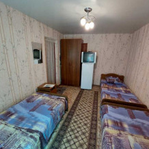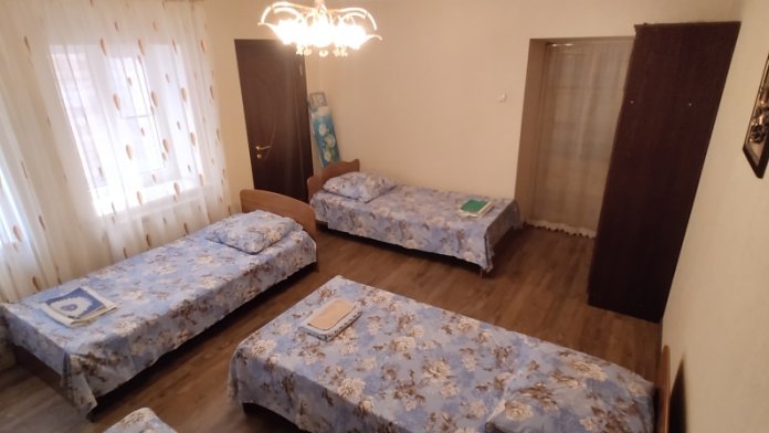 В наличии 3-х и 4-х местные номера. В номере, телевизор, сплит-система, бесплатный wi-fi, санузел (душ с горячей водой, раковина, унитаз), гипоаллергенные матрасы и подушки-новые к сезону 2025 года. Также предлагаются 3 номера «Стандарт» класса. два 3х местных и один 4х местный.