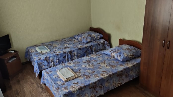 В номере находится шкаф, , полуторные кровати, холодильник, телевизор, сплит-система .WI-FI прикроватные тумбочки, вешалка, зеркало, санузел на территории индивидуальный для каждого номера .
