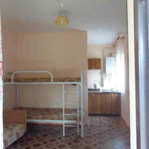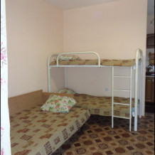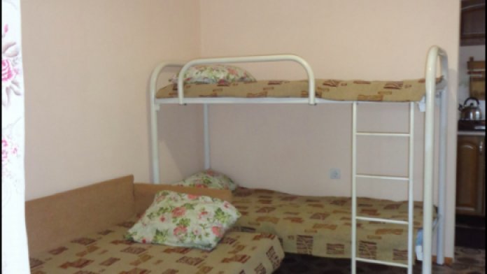 В номере двухъярусная взрослая кровать и диван-кровать. В новом большом номере на 2 этаже двуспальная кровать и 2 односпальных кровати.