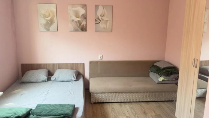5-местный номер разделен на 2 зоны: спальная и кухонно-столовая. Между зонами находится санузел. В спальне одна 1-спальная и одна 2-спальная кровати, диван-еврокнижка. Таким образом, каждый номер рассчитан до 5 мест. Также в спальной зоне имеется сплит-система, телевизор, шкаф. У каждого номера отдельный вход. Для самостоятельного приготовления пищи в каждом номере имеется своя индивидуальная кухня, укомплектованная всем необходимым: газовая плита, чайник, мойка, посуда, обеденный стол, холодильник.