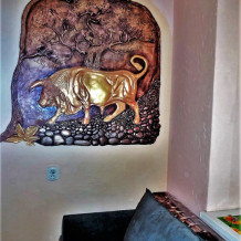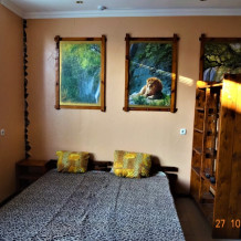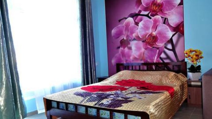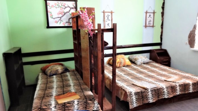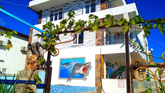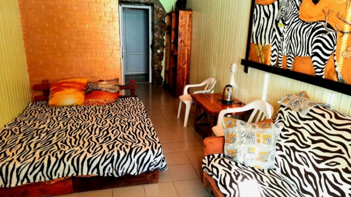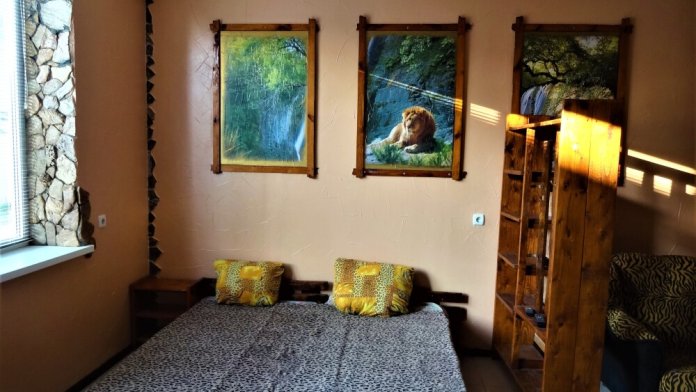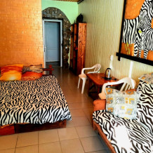 Изюминкой нашего дома являются уникально оформленные номера в разных стилях. В отделке номеров использованы экологически чистые материалы: черноморские камни, ракушка, дерево, плитка, барельефы. В дизайне использованы практически все стили: японский, китайский, египетский, морской, сафари, саванна, индейский, охотничий, цветочный, экзотический. Комнаты с высокими потолками, большими окнами, просторные. На 1 этаже все номера оборудованы мини-кухней. В каждом номере есть туалет, душ, ЖК ТВ, кровати с ортопедическими матрацами, стулья, столы, тумбочки, шкаф для белья, холодильник, сплит-система. Во всех комнатах ловит скоростной 4G + интернет WI-FI бесплатный.