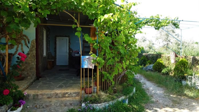 В номере 2-спальная кровать, диван раскладывающийся, туалет, душ, сплит-система, холодильник, ЖК ТВ, шкаф для белья, на террасе стол, стулья, крытая беседка виноградная с выходом на детскую площадку.