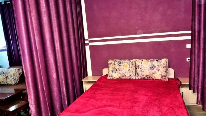 В номере мини-кухня с мойкой, посудой, эл. чайником, эл. плиткой, холодильником, ТВ ЖК 20 канала, сплит система, стол со стульями, тумбочки, комод для белья, туалет, душ, 2 кровати с ортопедическими матрацами, раскладной диван на 2 человек, шкаф.