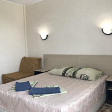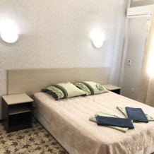 Отель представлен трёхэтажным корпусом с комфортабельными номерами на 2-3 человека. Большие панорамные окна, придают номерам больше света, а балконы больше простора и свежего воздуха. Зелёный вьющийся плющ, красиво укрыл весь первый этаж здания и плавно тянется вверх. Это придаёт летний контраст отелю и приятно радует глаза на отдыхе.