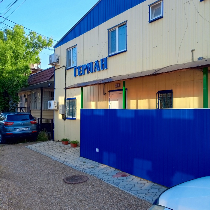 Гостевой дом «Герман» расположен в станице Голубицкой, на территории кооператива «Кавказ», в двух минутах ходьбы до пляжа. Рядом с домом расположены продуктовые магазины, столовые. Также недалеко (в пределах 10 минут ходьбы) универсам «Магнит», аквапарк, парк аттракционов и другие развлечения курортной зоны станицы.