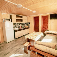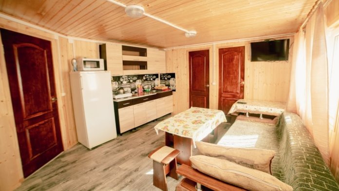 Для проживания предлагаем размещение в комфортабельных номерах (от 2 до 6 мест), где есть все необходимое для отдыха и на каждый номер (или в самом номере, см. описание) идет своя кухня для самостоятельного приготовления пищи.