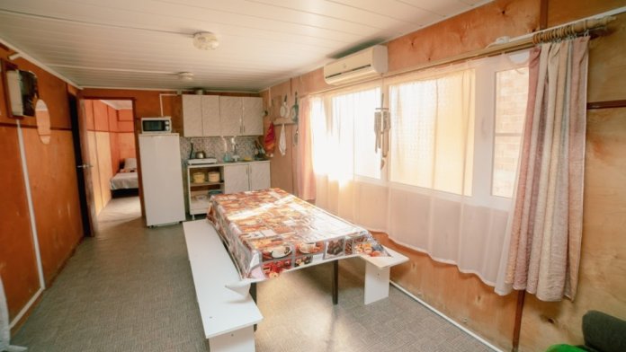 В номере телевизор, холодильник, система кондиционирования, душ, кухня, две двуспальные кровати, кресло, стол, стулья, шкаф.