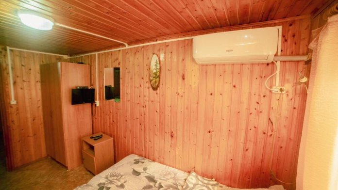 В номере телевизор, холодильник, система кондиционирования, стиральная машина, душ, кухня, чайник, четыре односпальные кровати, прикроватные тумбочки, шкаф, стол, стулья.