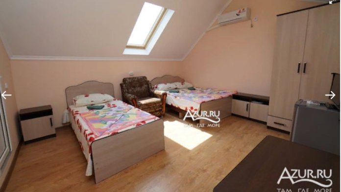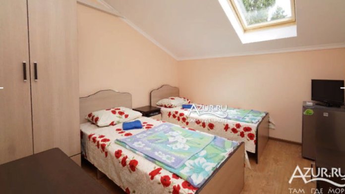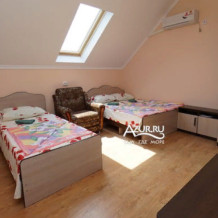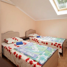 Номера: к услугам отдыхающих комфортные 2-х, 3-х, 4-х и 5-ти местные номера со всеми удобствами. В номерах имеется ТВ, холодильник, сплит, санузел и балкон, откуда открывается вид на море, горы, парк. Уборка в номерах и смена постельного белья по требованию.