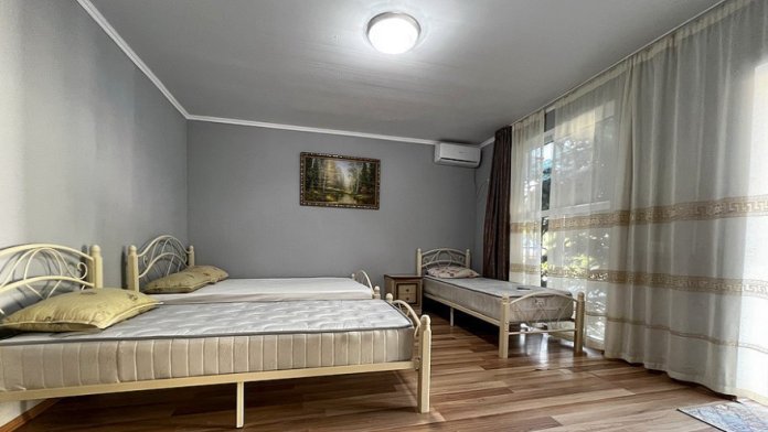 Двор гостевого дома усажен хвойными деревьями, пышными кустами цветущих благоухающих растений, на задней части двора имеется шашлычный дворик с мангалом и беседками для отдыха. Позади дома растет лес, так что Вы будете просыпаться под звонкое пение птиц, мягкий шелест листвы и прохладный ветерок, а днем можно осуществлять приятные прогулки по лесным тропкам, наслаждаясь тишиной, свежим воздухом и полным отсутствием забот.