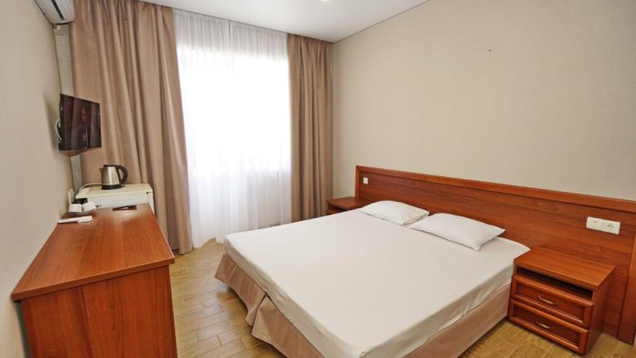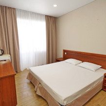 В номере двухспальная кровать king-size системы трансформер (TWIN/ DBL), ортопедические матрасы. Мебель из экологического материала: стол, стулья, тумбочка, гардероб. ТВ, мини-холодильник, набор посуды, электрический чайник. Сплит-система, Wi-Fi, балкон. Совмещенный санузел с душевой кабинкой, гигиенические средства, полотенца. Балкон с модульной мебелью. Вид на живописные горы Кавказского хребта. Номера данной категории расположены на 2,3 этаже. Доп. места предусмотрены.