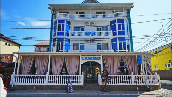 Отель «Парус» расположен на берегу моря, всего в нескольких минутах ходьбы от пляжа.