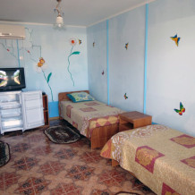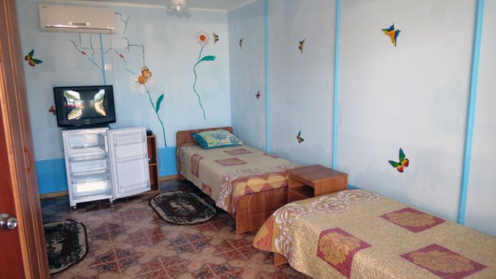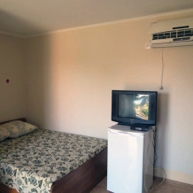 Просторный 2-х комнатный номер с отдельным входом, кухней и местом для отдыха. В каждой комнате ТВ, холодильник, сплит-система, Wi-Fi.