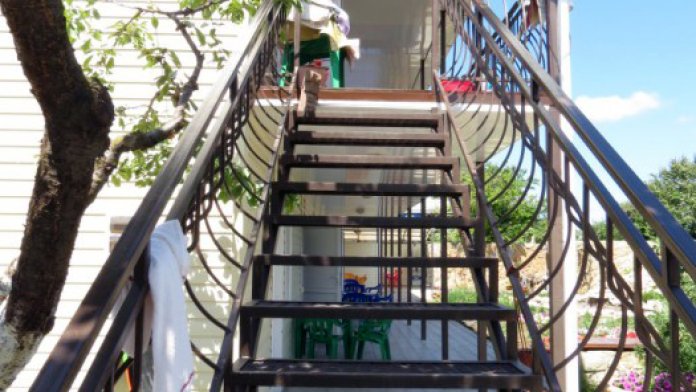 - двухэтажное строение с номерами разной категории, рядом расположена детская площадка, навес со столиками для отдыха и мангалом.