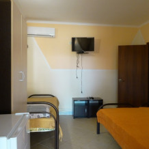 К услугам отдыхающих комфортабельные 2-4 местные номера «Стандарт». Всем постояльцам предоставляется доступ к Wi-Fi. Перед номером есть стол со стульями.