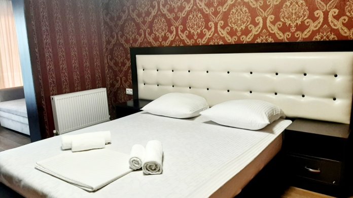 Подходит для размещения 2 человек. Имеет спальню с приятным интерьером. В номере: 1 двуспальная кровать. Имеется телевизор, кондиционер, шкаф, вешалка, рабочий стол, стулья, холодильник. Индивидуальная ванная комната: душ, раковина, туалет. В стоимость входит: Постельное бельё, полотенца, мыло. WI-Fi бесплатно на всей территории. Бесплатная общественная парковка на территорией. На территории находится бассейн.