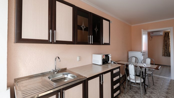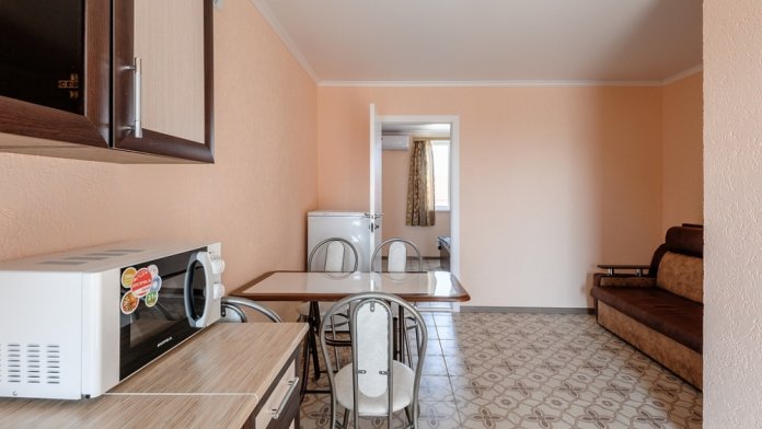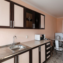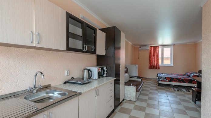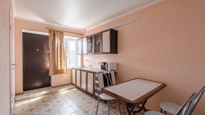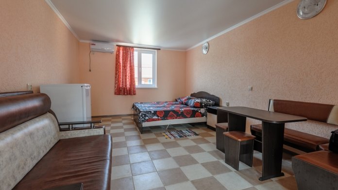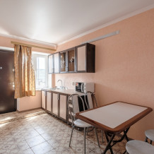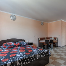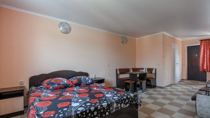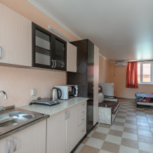 К Вашим услугам удобные, просторные четырёхместные номера. Имеются 5 номеров-студий и 9 двухкомнатных номеров с современной новой мебелью. Номера оснащены всем необходимым для комфортного проживания: кухня, санузел, телевизор, холодильник, микроволновая печь, индукционная плитка, чайник и вся необходимая посуда для приготовления пищи.