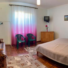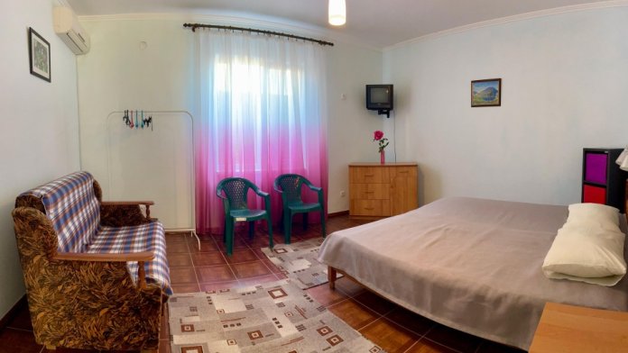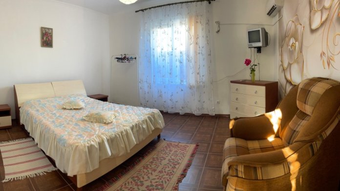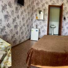На первом этаже особняка - 2 двухкомнатных номера повышенной комфортности. На втором этаже расположены однокомнатные номера, куда можно подняться по пологой лестнице, ведущей прямо из сада. Кроме номеров на втором этаже расположена отдельная комната для приготовления пищи, стиральная машина (за дополнительную плату), утюг. В садовой беседке Вы сможете готовить на мангале и баловать себя чаепитием на свежем воздухе.