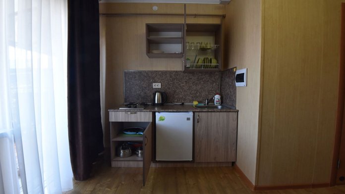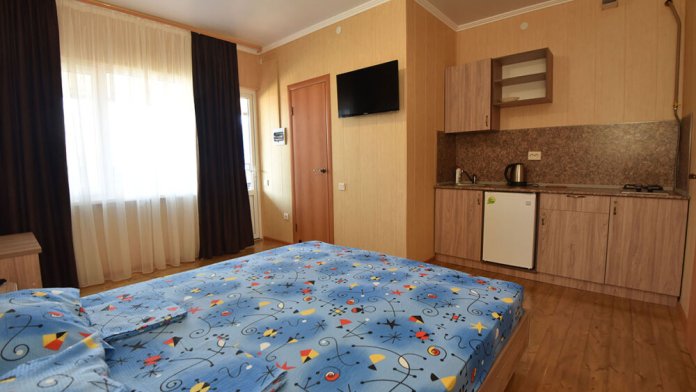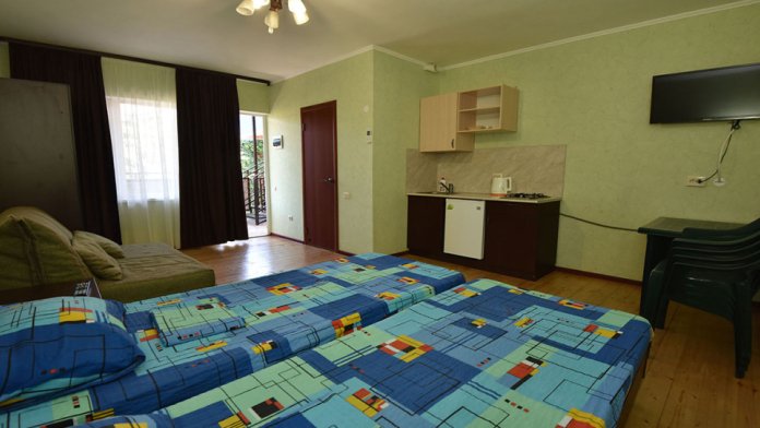 Однокомнатный номер-студия с кухней расположен на 2 этаже. Очень комфортный номер для отдыха с семьей на море.