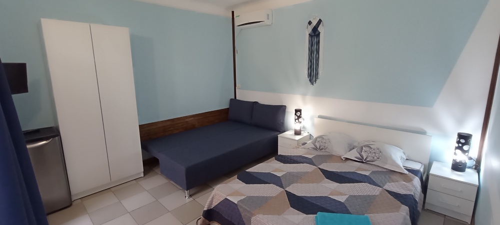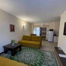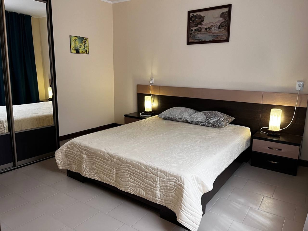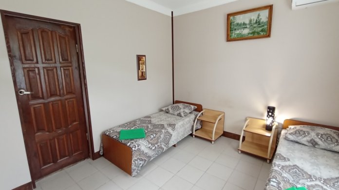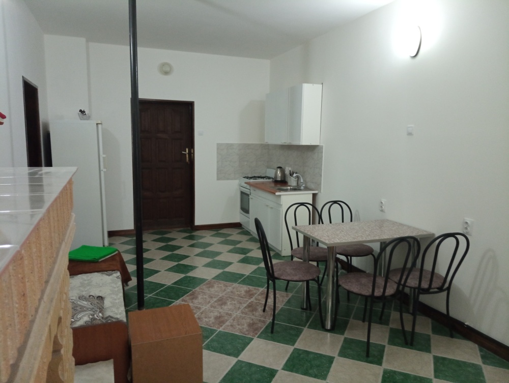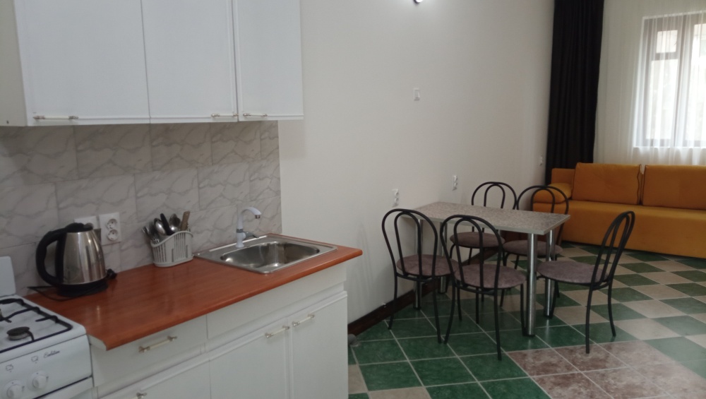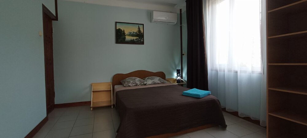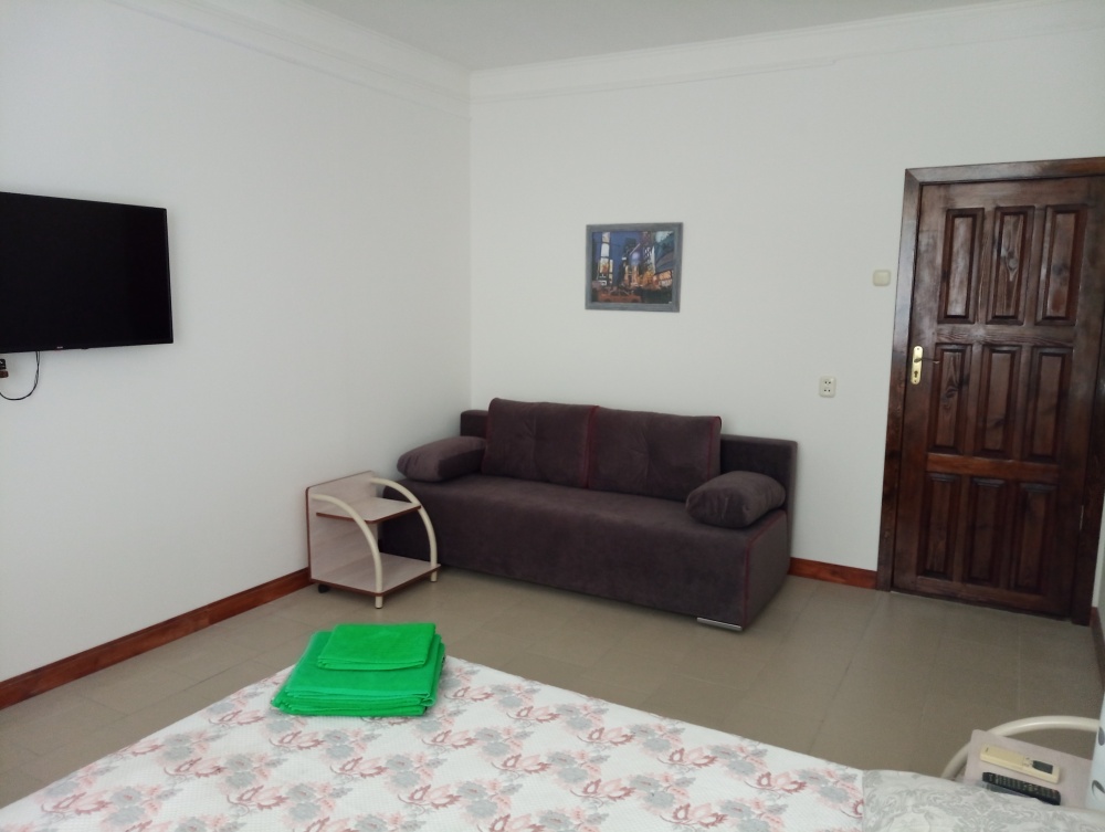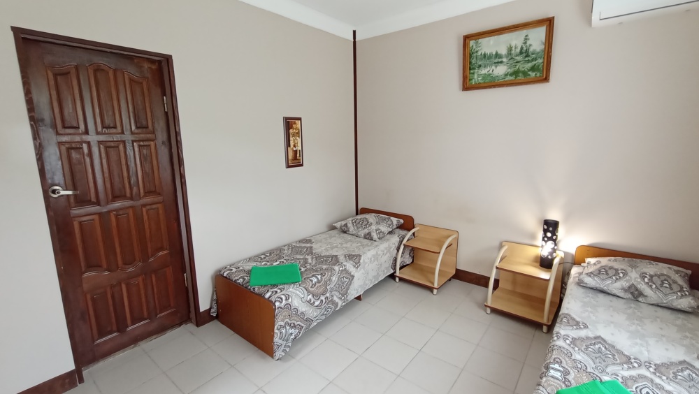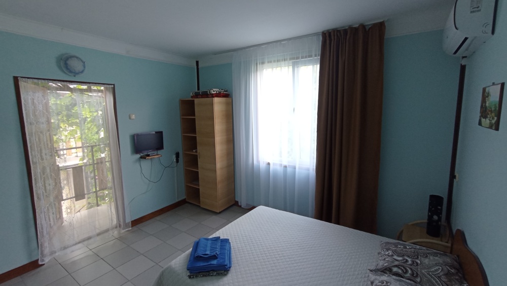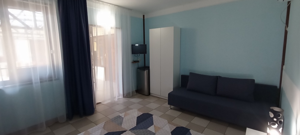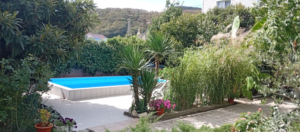 Территория гостевого дома просторная, много зелени (виноградник, инжир, мушмула, хурма, гранат, фейхоа, банановые пальмы и многое другое), что создает ощущение прохлады даже в самый жаркий день. Оборудована беседка, где можно поиграть в настольные игры, попеть в караоке, покушать или просто помечтать за кружечкой любимого напитка, есть зона для барбекю с мангалом, где Вы можете как самостоятельно, так и при нашей помощи приготовить желаемое. Круглый бассейн, для загара установлены шезлонги. На территории бесплатный Wi-Fi, предусмотрена автостоянка под 8 машин.