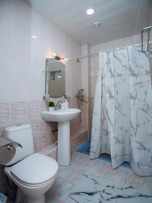 Гостевой дом "Тихий уголок" с её хозяйкой Валентиной встретили нас радужно. Комната для проживания досталась нам с современным ремонтом, просто огромная для 4-х отдыхающих. Душ, туалет в номере. ТВ, кондиционер также. Балкон в каждом номере. Общая кухня, на которой мы готовили завтраки и ужины. Также есть несколько летних столико и навесов во дворе, между кухней и бассейном. Бассейн всегда чистый, вода тёплая. Купались в нём днём. Очень правильное решение для моря. Есть где поплавать, независимо от погоды. Так же есть домашняя библиотека и бильярдный стол. К сожалению до него мы так и не дотянулись. Нам и так было весело и интересно!!! Хозяйка приветливая, радужная и доброжелательная! Так же у них есть шпиц, который моментально стал всеобщим любимцем!!! До моря как и заявлено 15 мин пешком через небольшой рынок летних морских товаров, Пятёрочка (два банкомата: сбер и Т-банк), Магнит и аптеку. Всё под рукой и в шаговой доступности. Рекомендую к бронированию и проживанию.