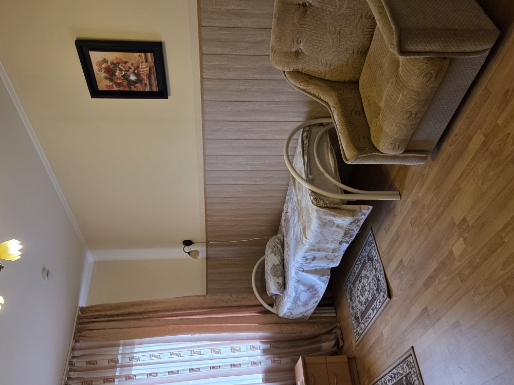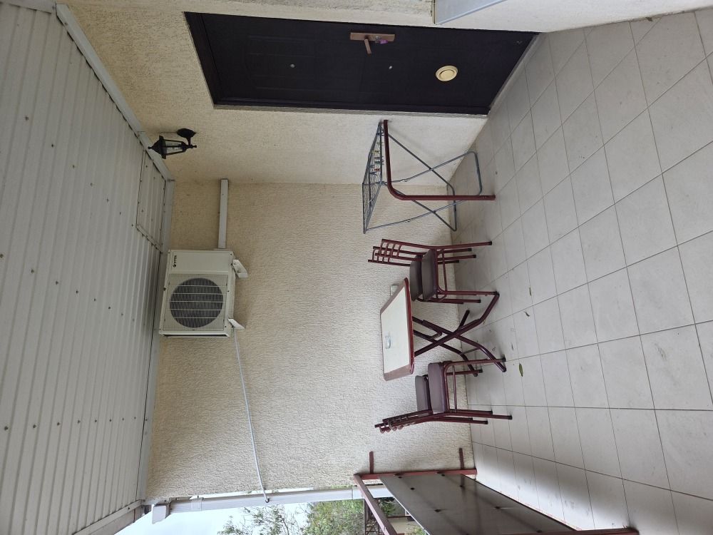 В номере кондиционер,туалет,душ, каждой комнате телевизор,кровати,столы,тумбочки. Балакон со столом и стульями.